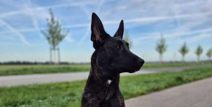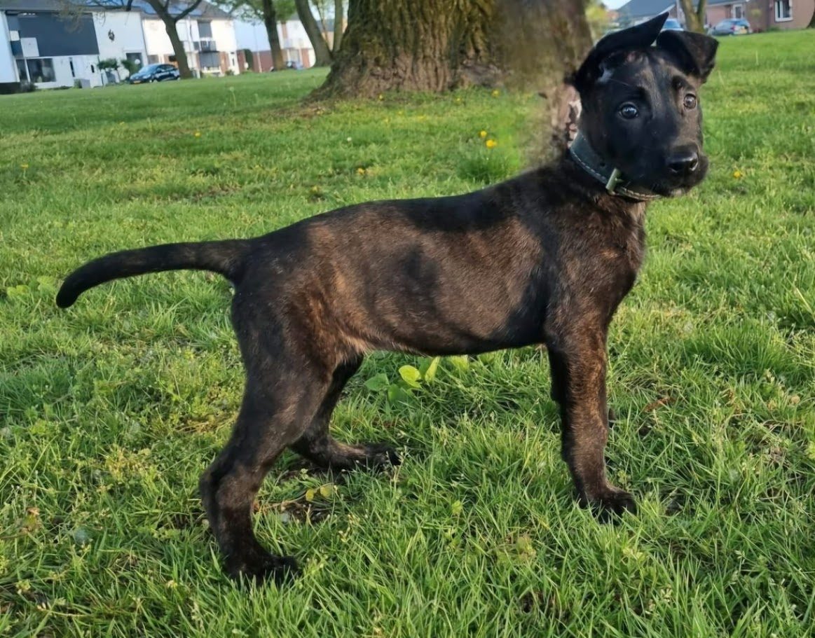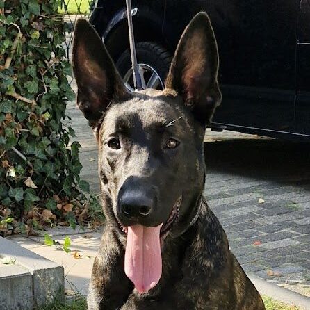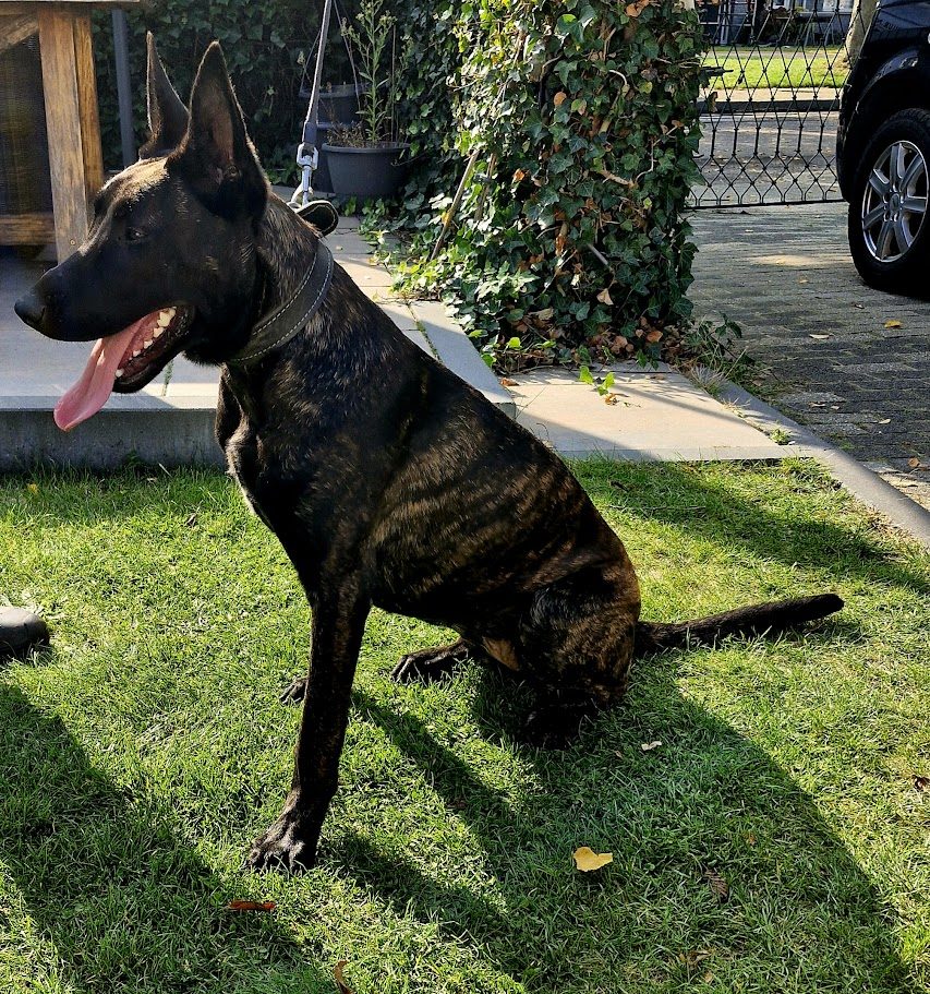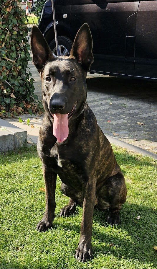 Dizzy is een mooie donkere kruising mechelse/hollandse herder. Het is een hele open vrije teef, ze is gek op een bal. Rene gaat met haar trainen voor KNPV en Praktijk zoeken.