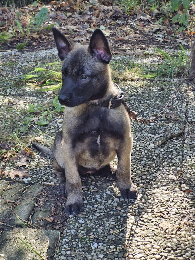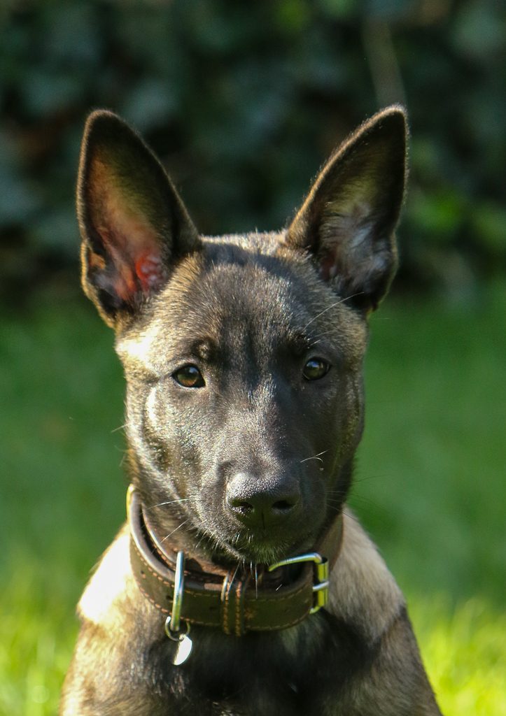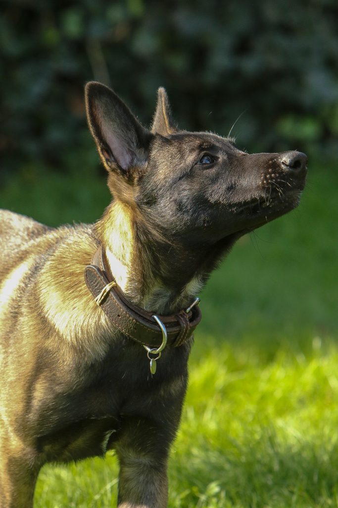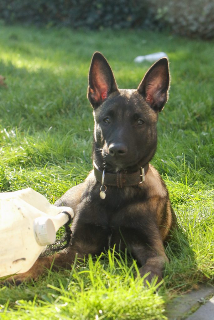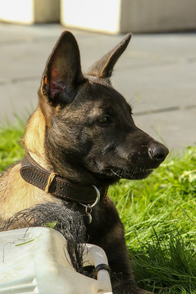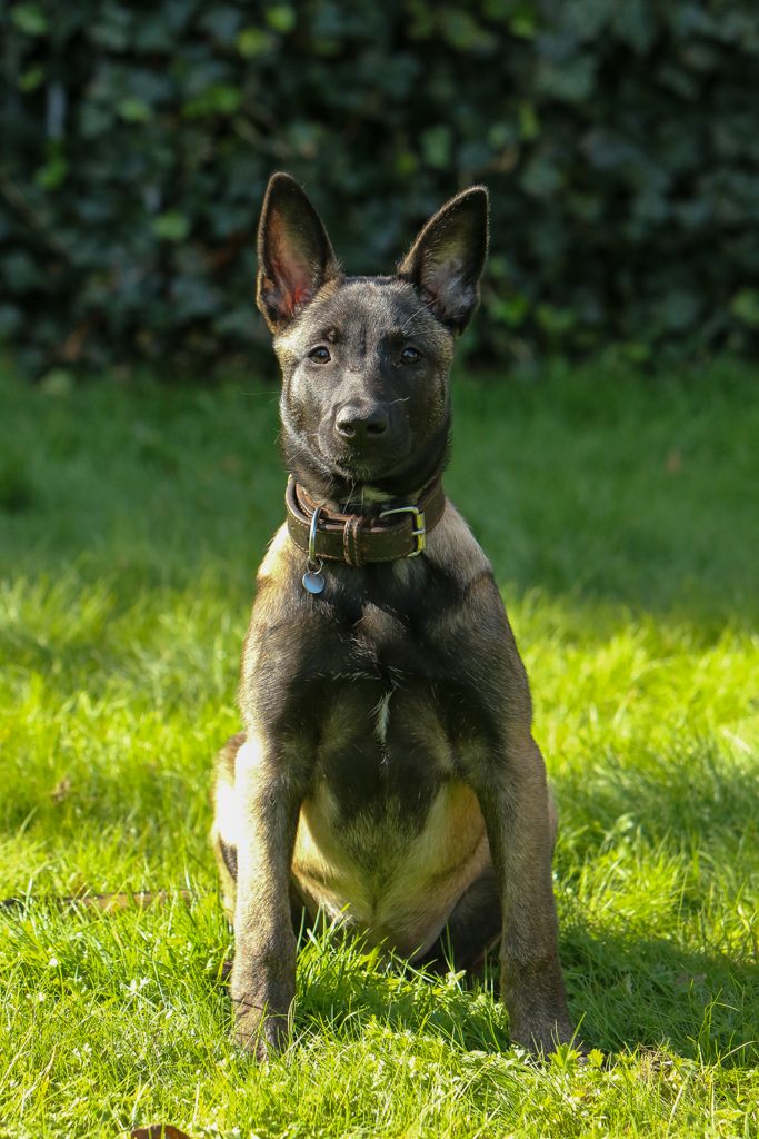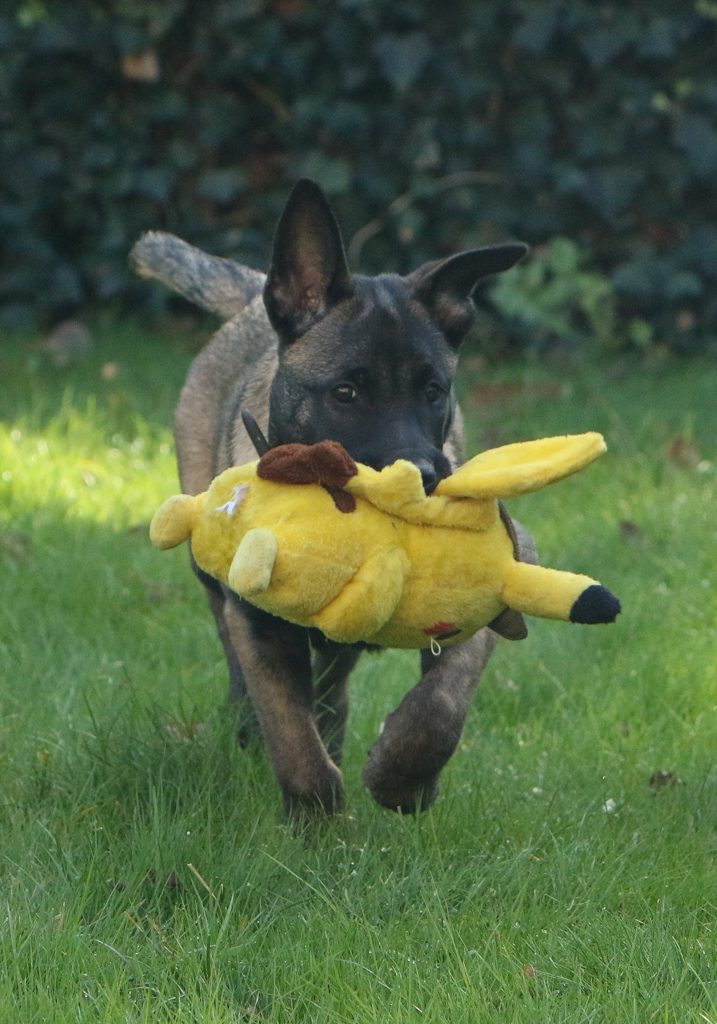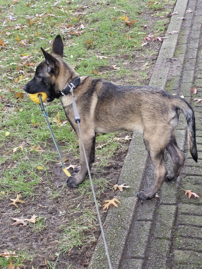 Roxy (roepnaam Dushy) is een mooie donkere pup. Het is een blije vrije teef. Iris gaat met haar trainen voor PH1. Als ze straks 100% medisch goed is zal zij ook gebruikt worden voor de fokkerij.