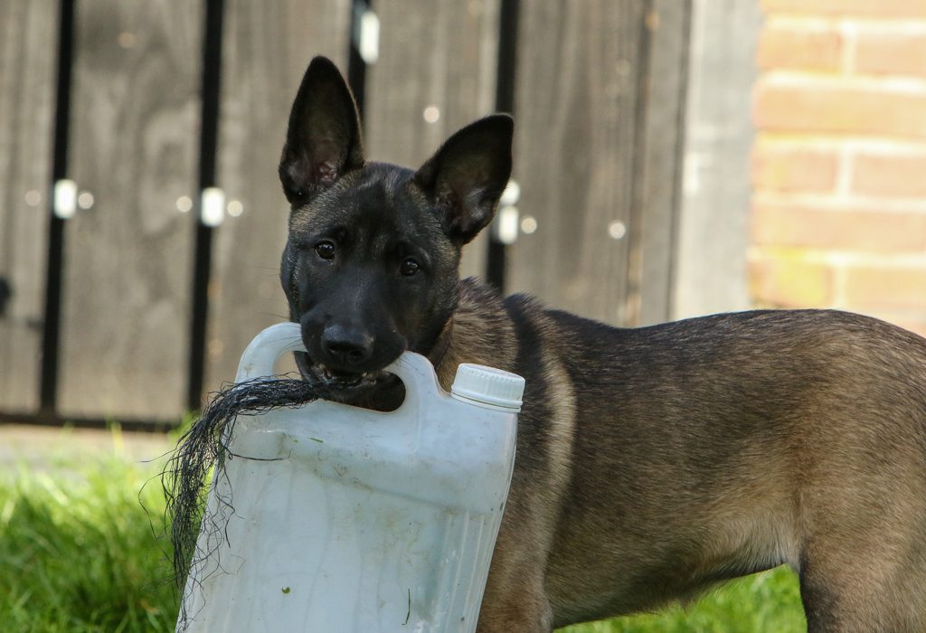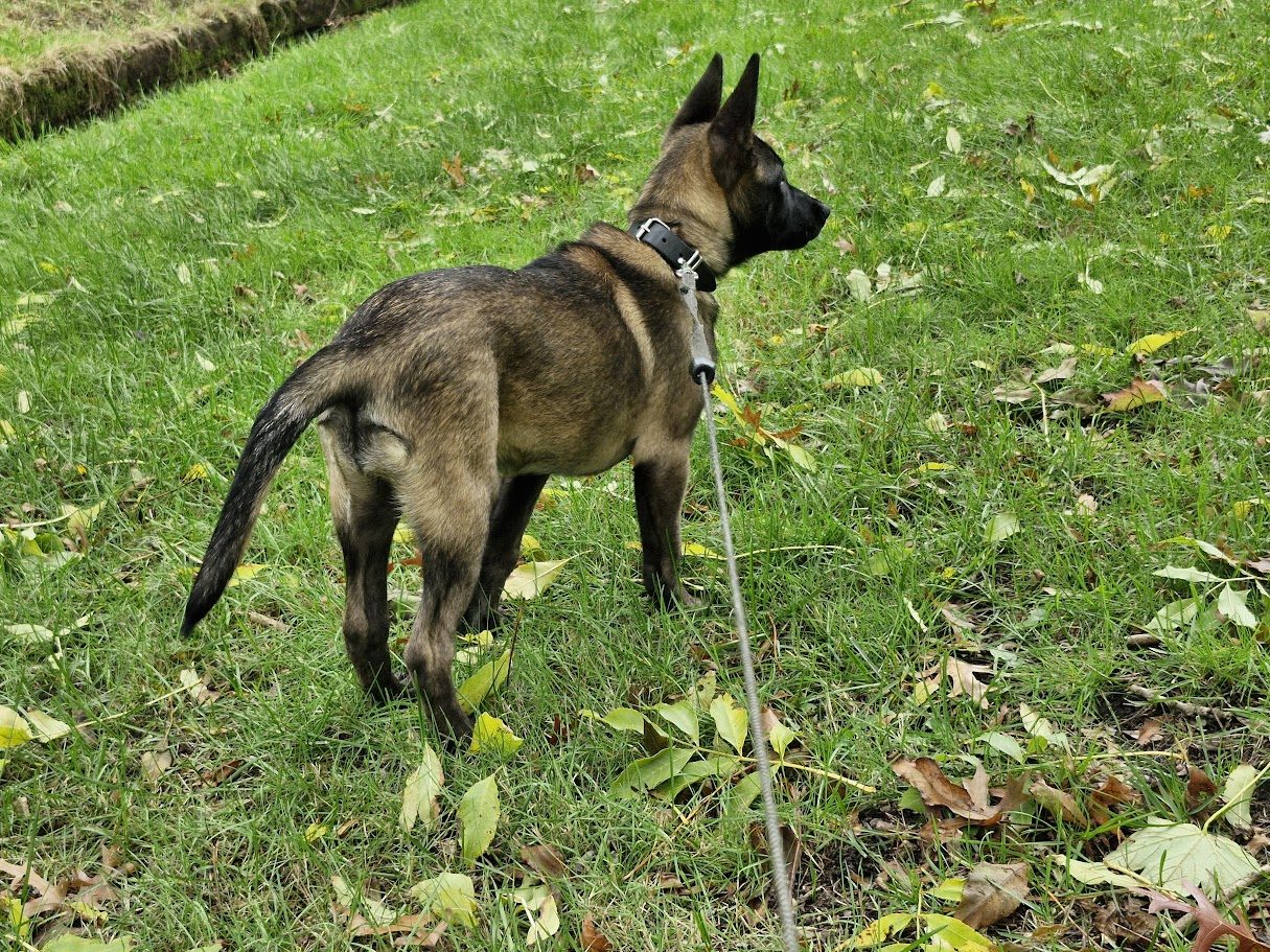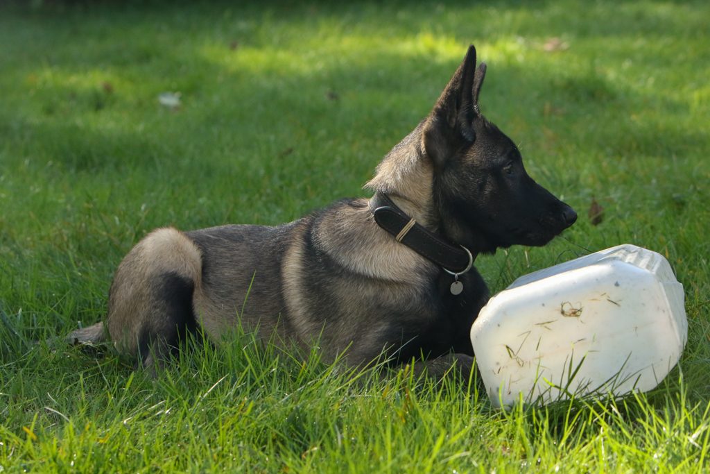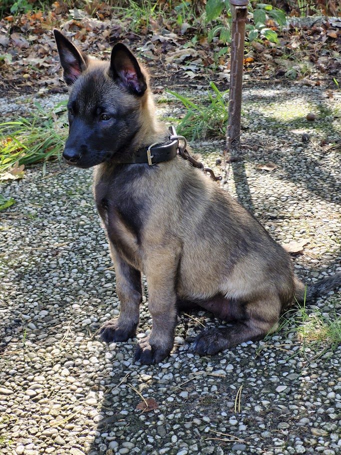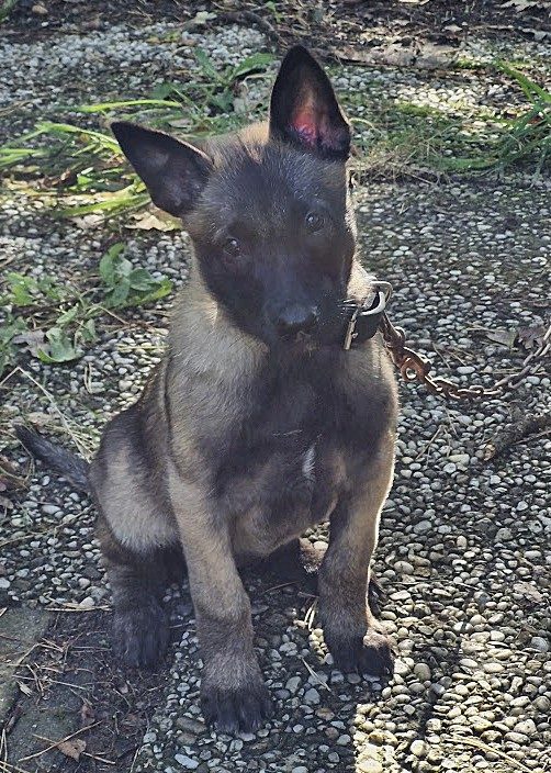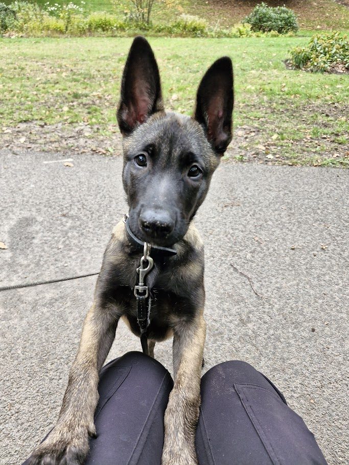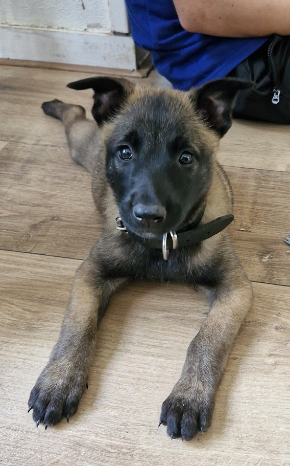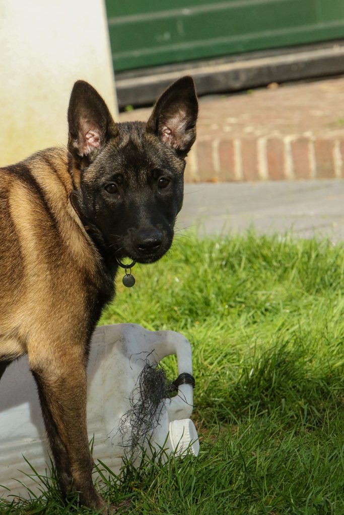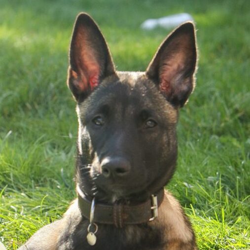 Roxy (roepnaam Dushy) is een mooie donkere pup. Het is een blije vrije teef. Iris gaat met haar trainen voor PH1. Als ze straks 100% medisch goed is zal zij ook gebruikt worden voor de fokkerij.